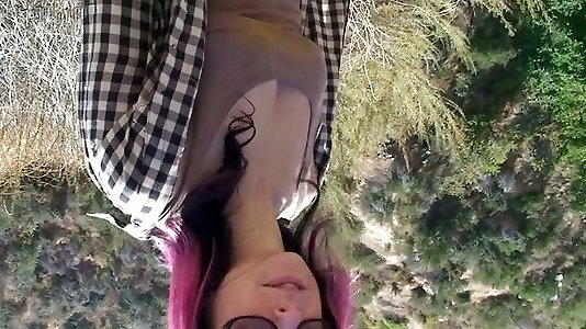 Pinkish haired whorable damsel in sunglasses demonstrates her pale bosoms on the road 07:44