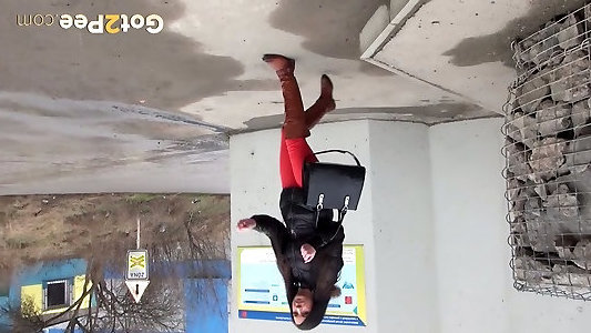 Obscene woman is frozen and wanna pee outdoors on lesbian mom push sex city road 03:42