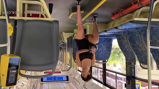Naughty Lada wears too short dress and no panties in public