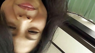 cute black-haired Japanese hotty. She gives a blowjob and has internal ejaculation hump in her shaved pussy. Uncensored