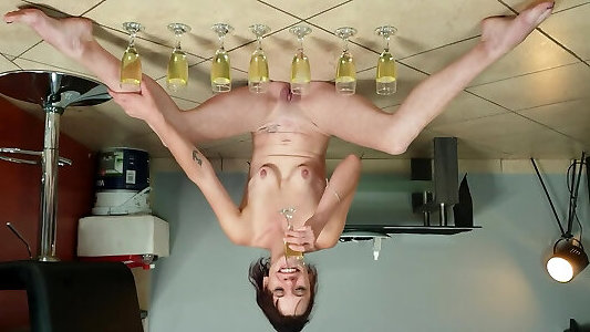 06:44Thin Petite Breasted Cougar Doing A Self Glass Piss Drink Challenge