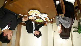 una mujer casada japonesa súper caliente despierta a su marido con sus mandíbulas chupando su polla y lo hace entrar en sus mandíbulas