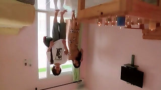 mi compañera de cuarto me engañó para darme un masaje y tocar mi trasero y mi coño y no pude hacer nada
