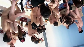 Lustful Asians keep their kimonos on while they have strenuous group fuck-fest with deep creampies