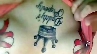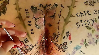 The many scars I gifted to my slave. Tattoos, ciggies, spanking scars, piercings on this filthy culo!