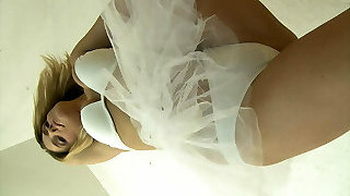Blonde cute young Japanese girl with skinny assets and big butts have sex with her fat sports teacher
