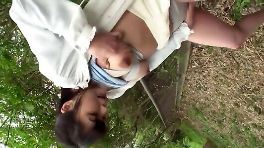While her big udders are rubbed the super-cute Asian chick gets a