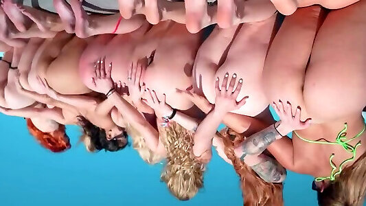 Hot chicks relax on a yacht and enjoy group lesbian love.