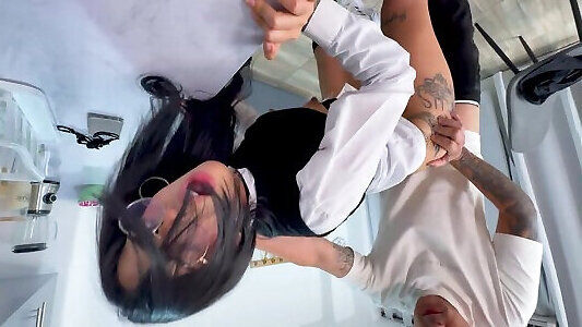 Petite Japanese Schoolgirl has ejaculation taking BBC cum in pussy!