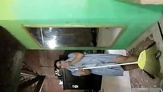 Asian voluptuous maid showcasing hot ass while stripping
