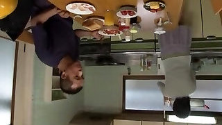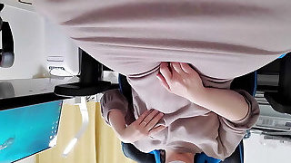 4'8'' 142cm Nine Month Pregnant Japanese MILF getting pawed all over with baby oil - Double webcam view from below and in front