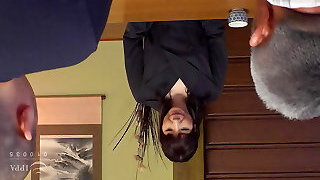 Hot asian maid in stockings gives her sir a deep fellatio and then begs him to pound her slutty pussy