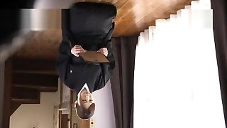 The Asian chick stood up doggy-style, and the neighbor immediately inserted his cock into her